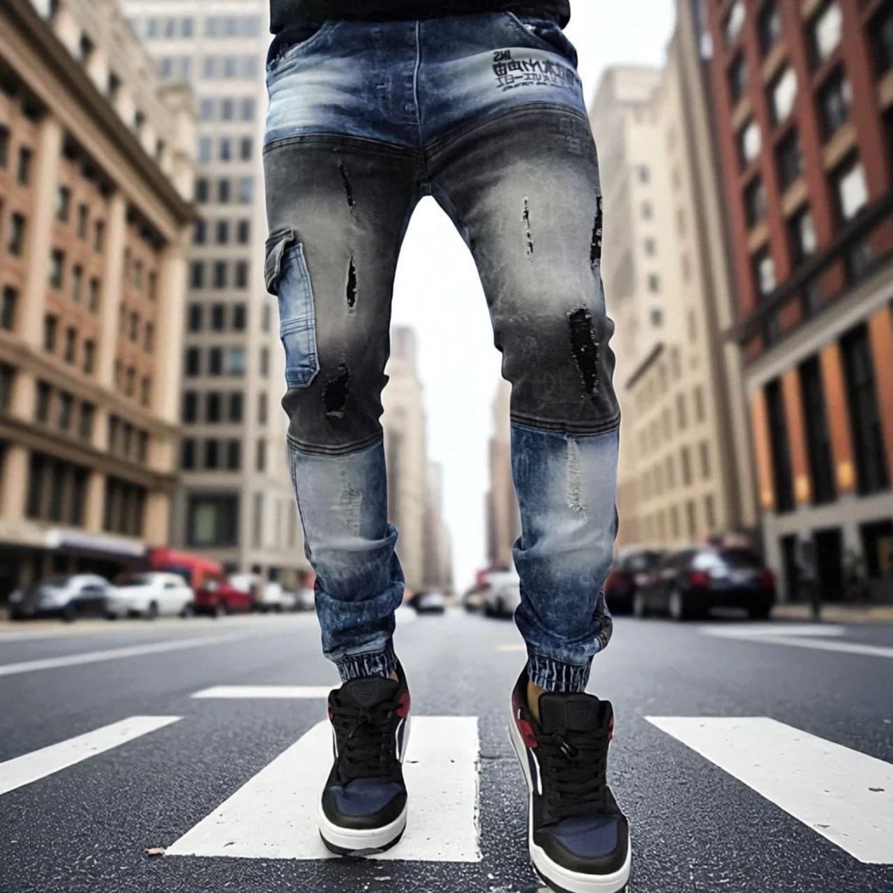 Estos Jogger de Mezclilla para caballero Estilo Skinny con Apliques ofrecen un ajuste moderno, ideal para un look casual y cómodo. Está diseñado especialmente para hombres que buscan estilo sin renunciar a la comodidad.