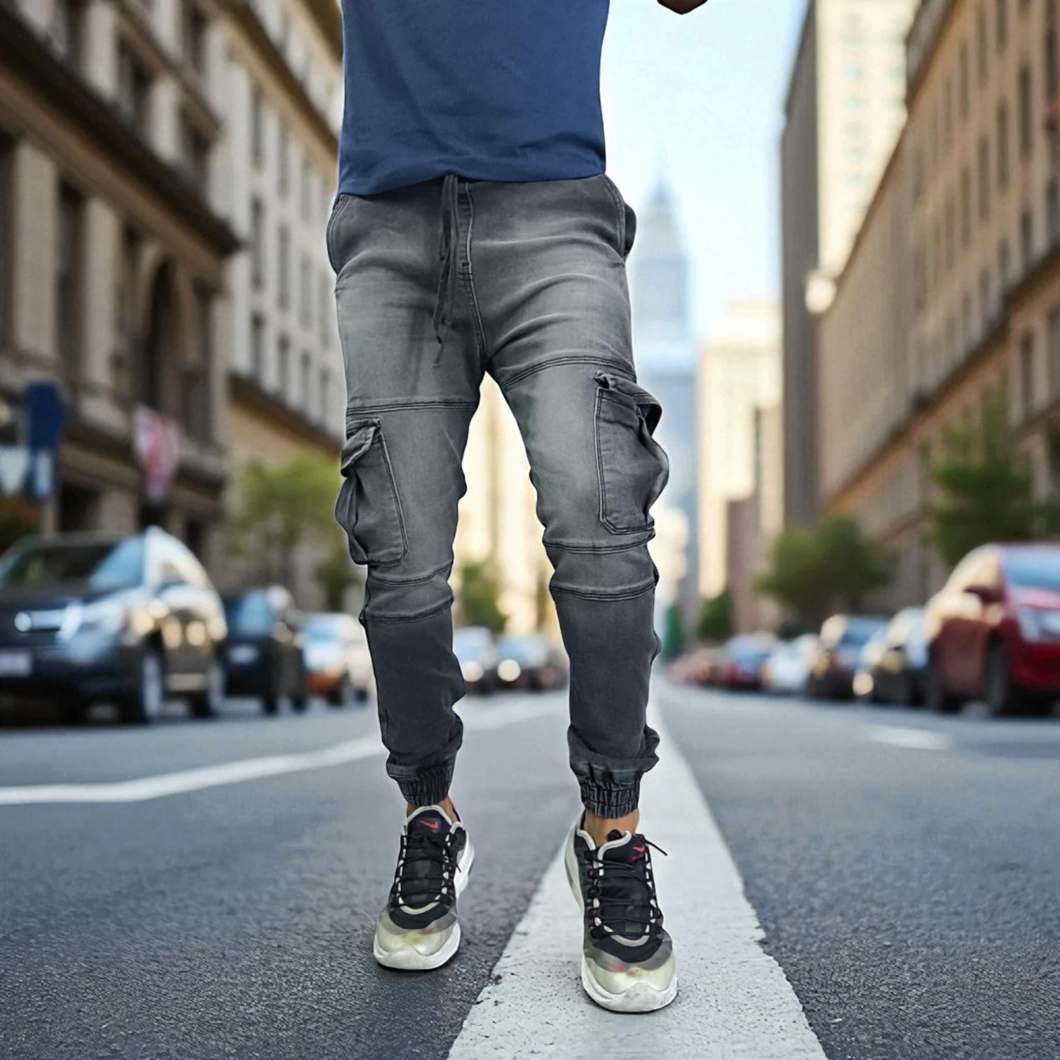 Con un diseño que combina elementos clásicos de los joggers y el sofisticado look del denim, este pantalón es perfecto tanto para actividades casuales como para salidas nocturnas informales. Los bolsillos tipo cargo no solo añaden un toque urbano, sino que también brindan el espacio ideal para guardar tus esenciales, como el teléfono, la billetera o llaves. Además, sus costuras resistentes añaden un extra de calidad que te dará confianza y seguridad en cada uso.