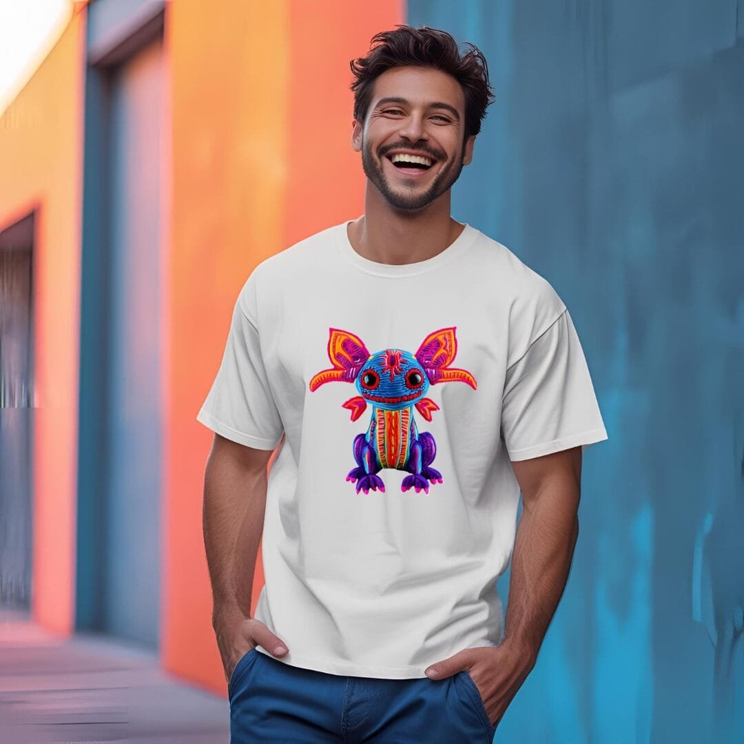 Con su corte regular unisex, esta playera está diseñada para ajustarse cómodamente a cualquier tipo de cuerpo, ofreciendo una apariencia relajada y moderna. El estampado de alebrije en colores vivos agrega un toque único de alegría y singularidad, convirtiéndola en la elección ideal para complementar tu guardarropa casual. Perfecta para combinar con jeans, shorts o pantalones, esta camiseta te ayudará a destacar en cualquier ocasión.