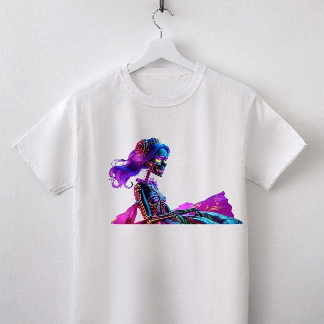 La Playera Corte Regular Unisex Estampado Cráneo Catrina Colores es mucho más que una prenda de vestir; es una obra de arte. Con su estampado colorido inspirado en la icónica Catrina mexicana, cada detalle está cuidadosamente diseñado para destacar y capturar la esencia cultural. Esta playera es ideal para quienes buscan expresar su creatividad y apreciar la fusión entre tradición y modernidad.