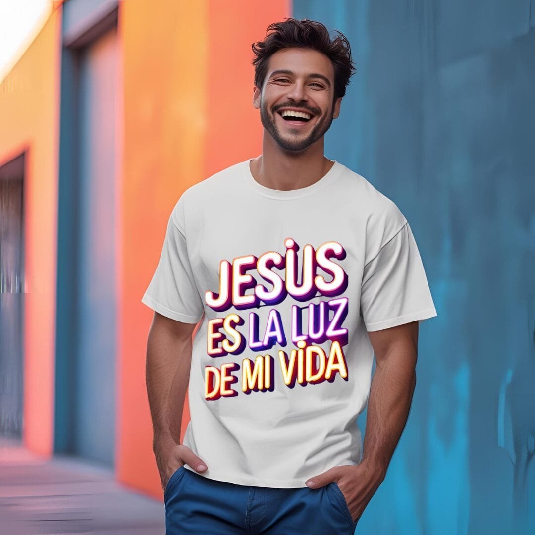 La Playera Corte Regular Unisex con estampado ‘Jesús es la luz de mi vida’ es más que una prenda, es una declaración de fe, estilo y comodidad. Con un diseño sencillo pero impactante, esta camiseta permite mostrar tu mensaje espiritual mientras mantienes un look casual y moderno, ideal para cualquier ocasión.
