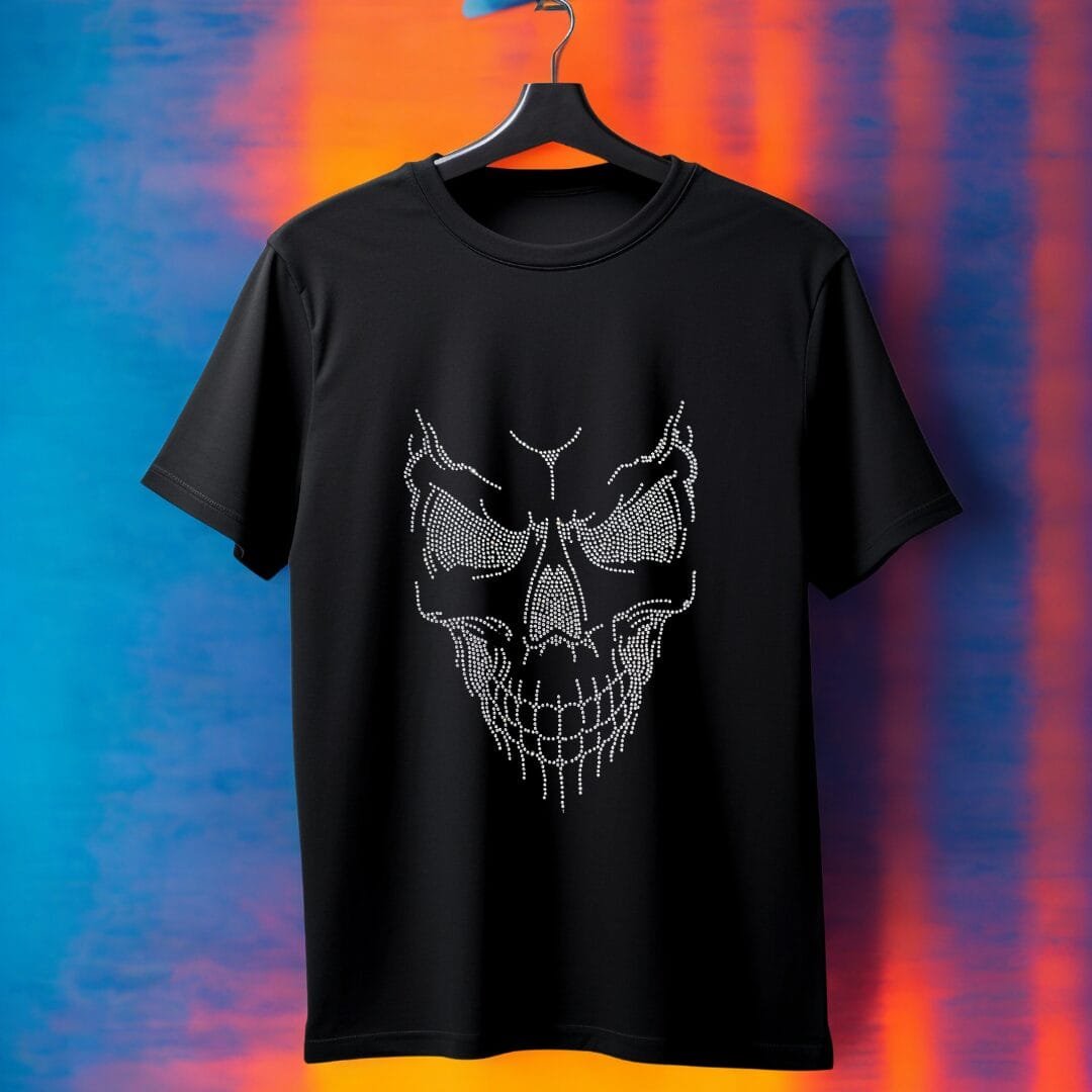 La Playera Corte Regular Unisex Pedrería Brillante Cráneo Llamas es tan versátil como estilizada. Combina perfectamente con jeans, pantalones o incluso shorts, adaptándose a una amplia variedad de ocasiones y looks. La naturaleza unisex del diseño garantiza que cualquiera pueda disfrutar de este impresionante estilo sin esfuerzo. Ya sea que prefieras un look urbano, informal o algo intermedio, esta playera será tu aliada perfecta para resaltar tu personalidad.