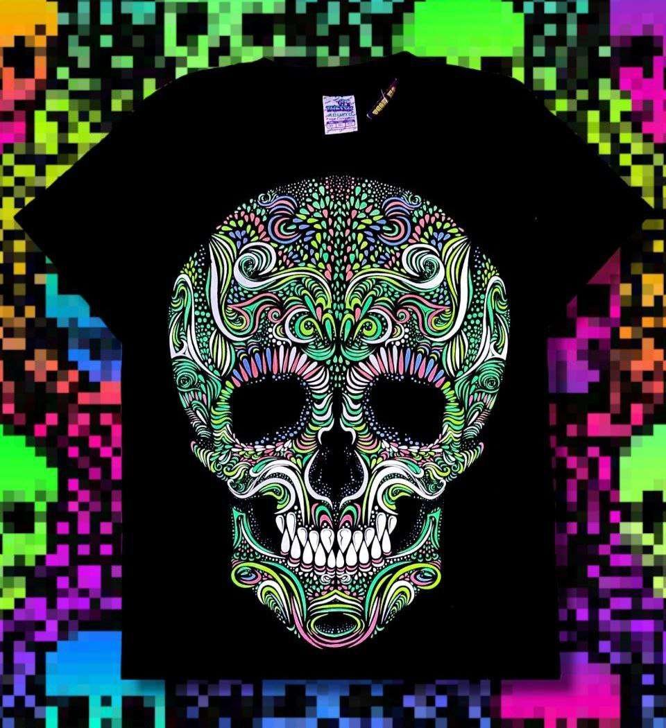 Ir a la TiendaBonita Playera con diseño de personajes halloween y día de muertos, con estampado que resplandece en la oscuridad con el reflejo de la luz neón, es unisex ,para asegurar tu talla consulta la guía de tallas.