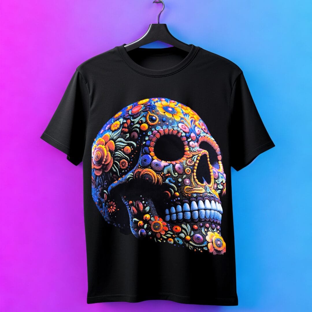 La Playera Cráneo Morado Neón Resplandeciente no es como cualquier otra playera; es una obra maestra que celebra la creatividad y la individualidad. Su diseño irradia autenticidad y excentricidad, ideal para quienes desean expresarse sin límites. Sea cual sea tu estilo, esta prenda es el complemento perfecto para tu guardarropa.