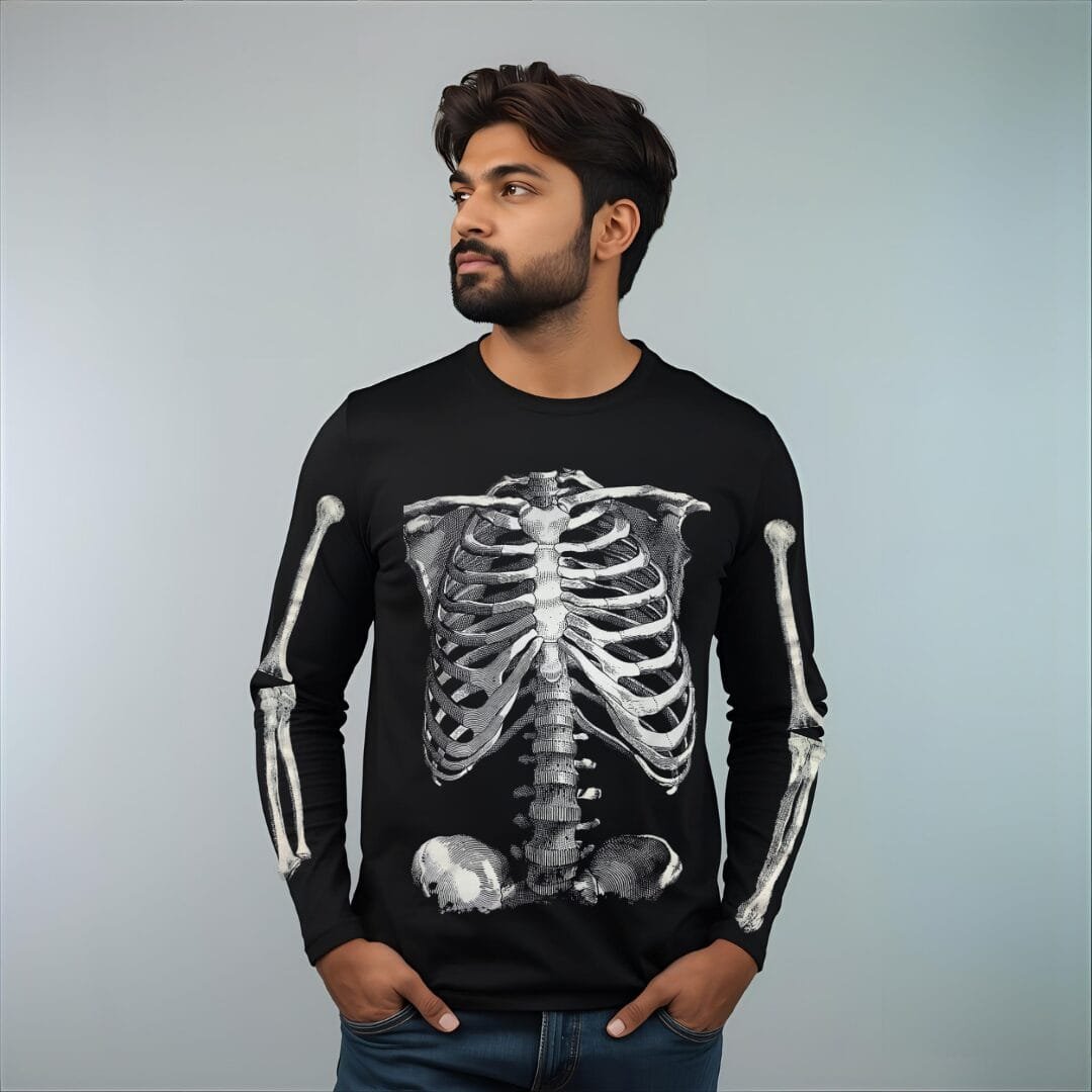 La Playera Esqueleto Manga Larga Algodón Unisex destaca por su diseño elegante y adaptable, ideal para quienes buscan combinar comodidad con estilo. Disponible en una amplia variedad de colores, esta playera es perfecta para cualquier ocasión: desde un día relajado en casa hasta eventos más casuales.
