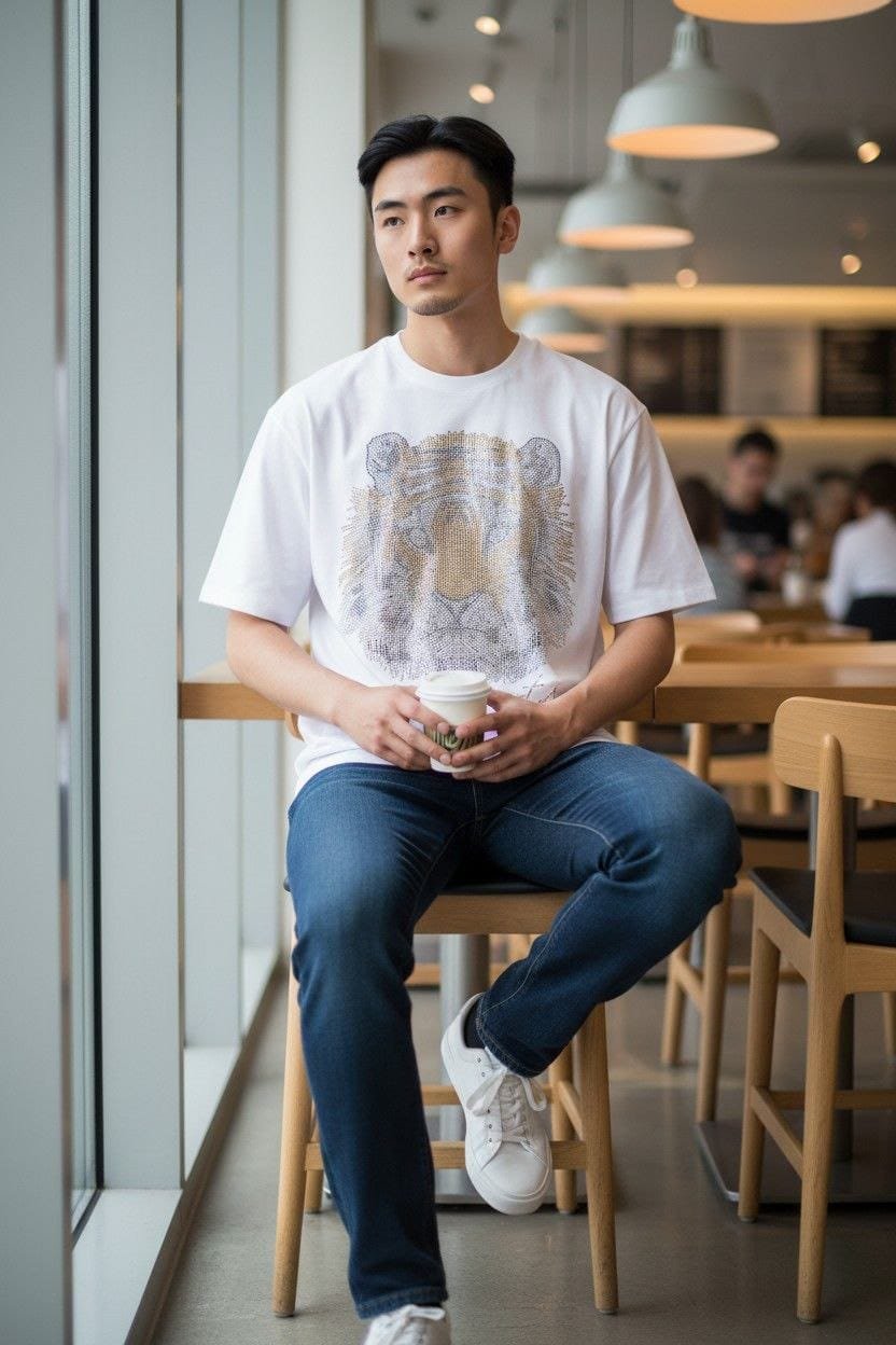 Playera para caballero con impactante estampado de felino elaborado en pedrería, ideal para quienes buscan un estilo moderno, audaz y con personalidad. Su corte Slim Fit se ajusta al cuerpo resaltando la silueta, mientras que su confección en tela suave y transpirable brinda comodidad durante todo el día.