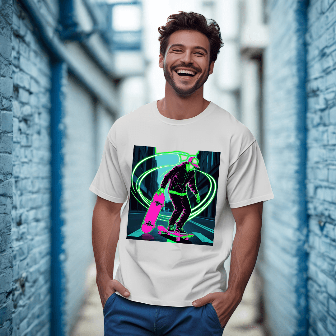 Esta Playera Corte Regular Unisex Estampado Urbano Patineta ofrece un estilo moderno, ideal para un look casual y cómodo. Está diseñado especialmente para hombres que buscan estilo sin renunciar a la comodidad luciendo genial con su corte oversize
