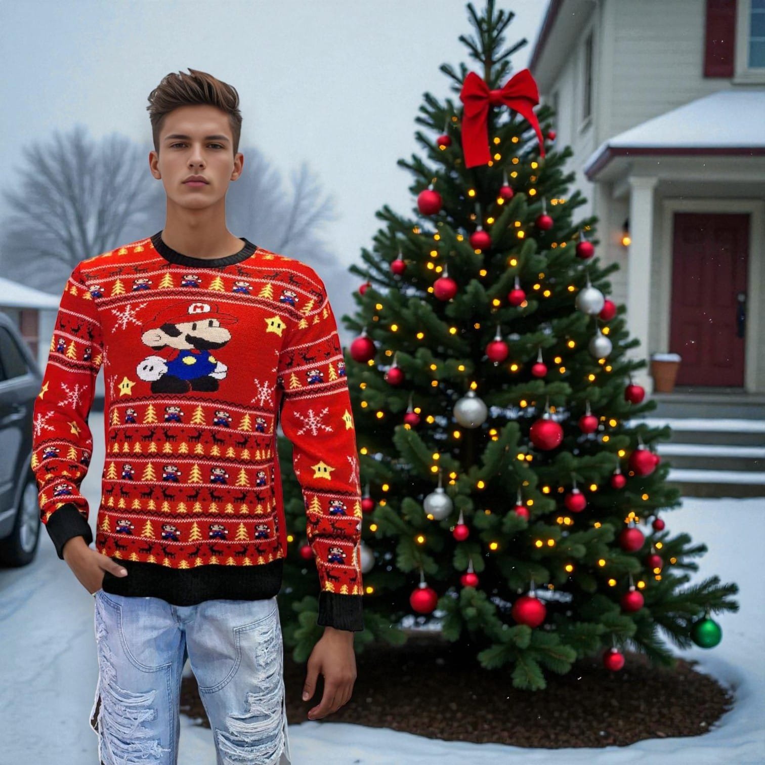 Agrega un toque especial y lleno de humor a tus celebraciones navideñas con el Suéter Ugly Navideño Mario con Luz. Diseñado para destacar, este suéter se convierte en el centro de atención gracias a su diseño inspirado en Mario y sus luces integradas. Es una opción perfecta para tus reuniones familiares, eventos temáticos o simplemente para alegrar el ambiente durante las fiestas.