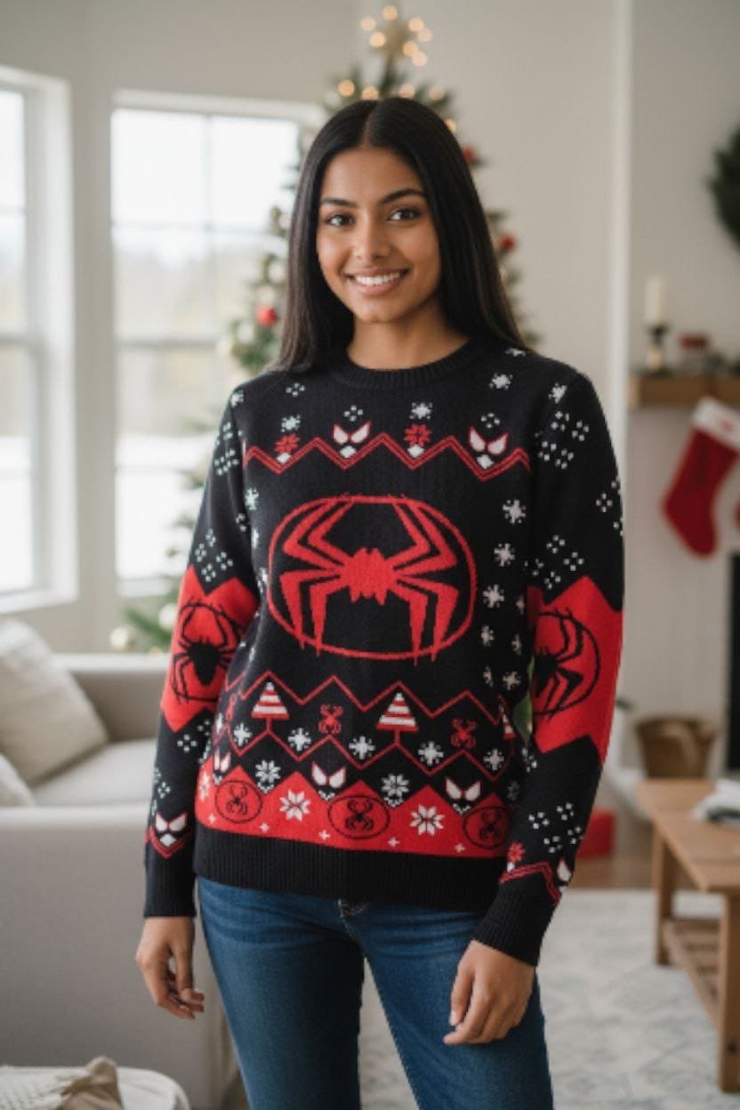 Este suéter ugly navideño unisex combina el espíritu festivo de la Navidad con el icónico personaje de Spiderman, haciendo de esta prenda una opción perfecta para quienes buscan celebrar la temporada con un toque divertido y único. Diseño cuidadosamente elaborado, este suéter es ideal para reuniones familiares, fiestas temáticas, o simplemente para sentir la magia navideña mientras muestras tu lado geek.