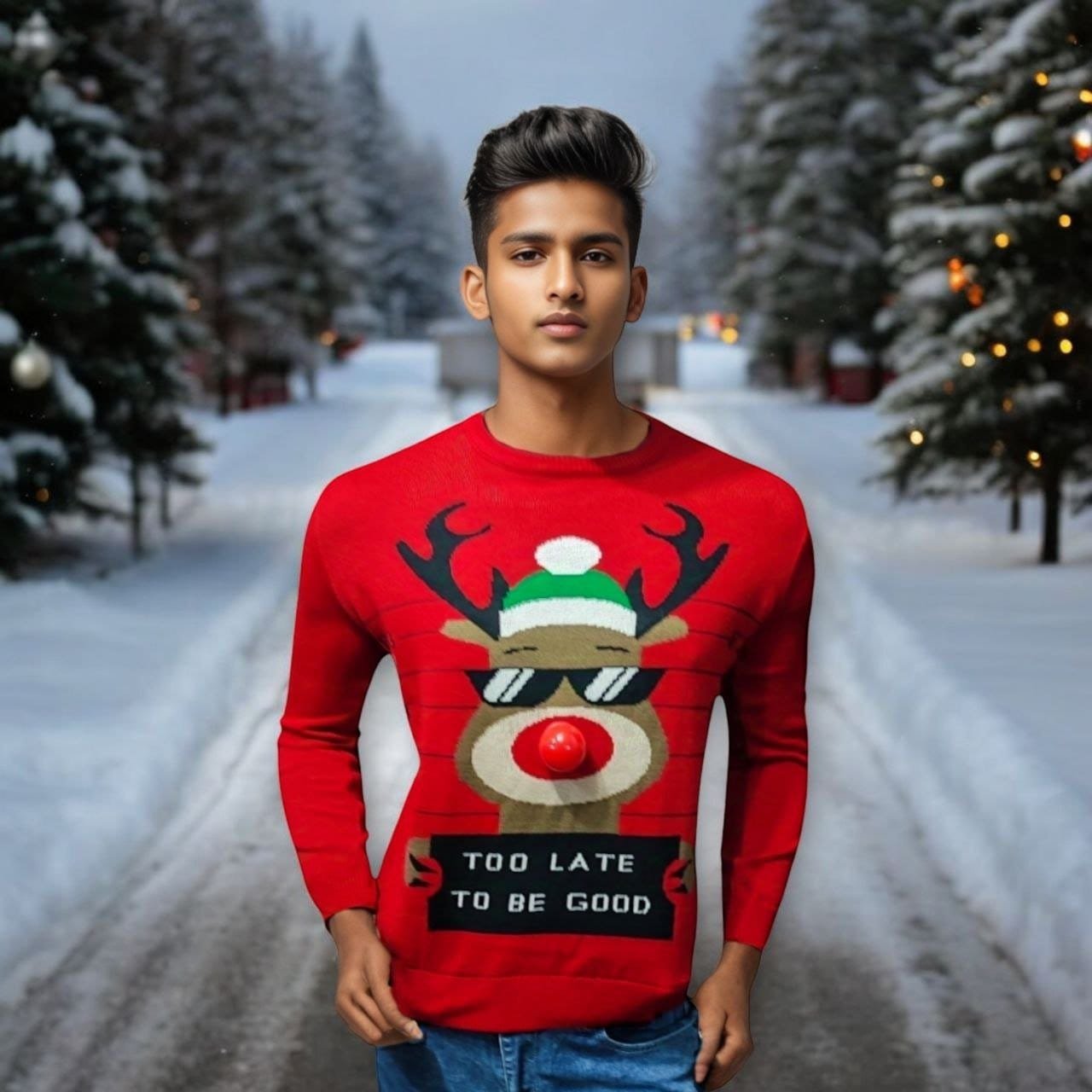 Ugly Sueter Navideño tejido confeccionado en acrilán algodón ideal para festejar las fiestas decembrinas.