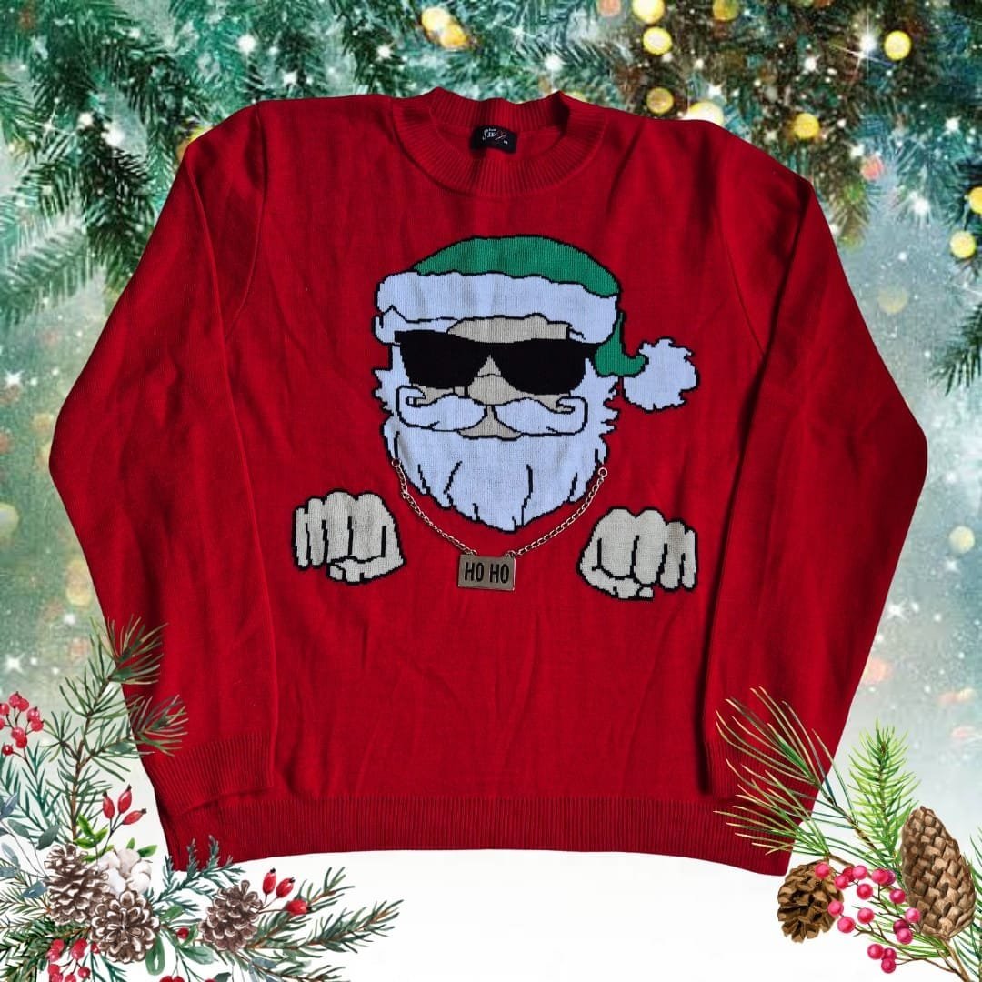 Ugly Sueter Navideño tejido confeccionado en acrilán algodón ideal para festejar las fiestas decembrinas.
